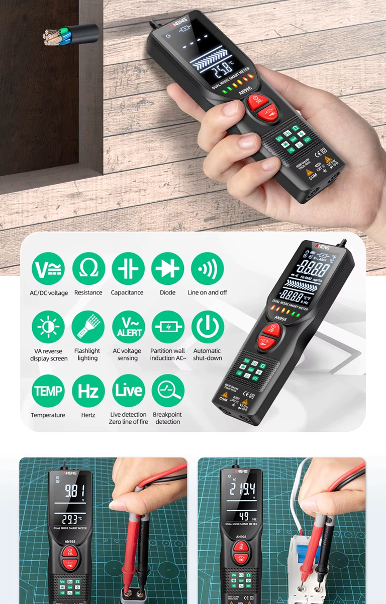 ANENG AN998 multimetro inteligente tester digital automatico electricista profesional voltimetro amper multimeter comprobador de condensadores herramientas instrumentos eléctricos frecuencimetro capacimetro medidor