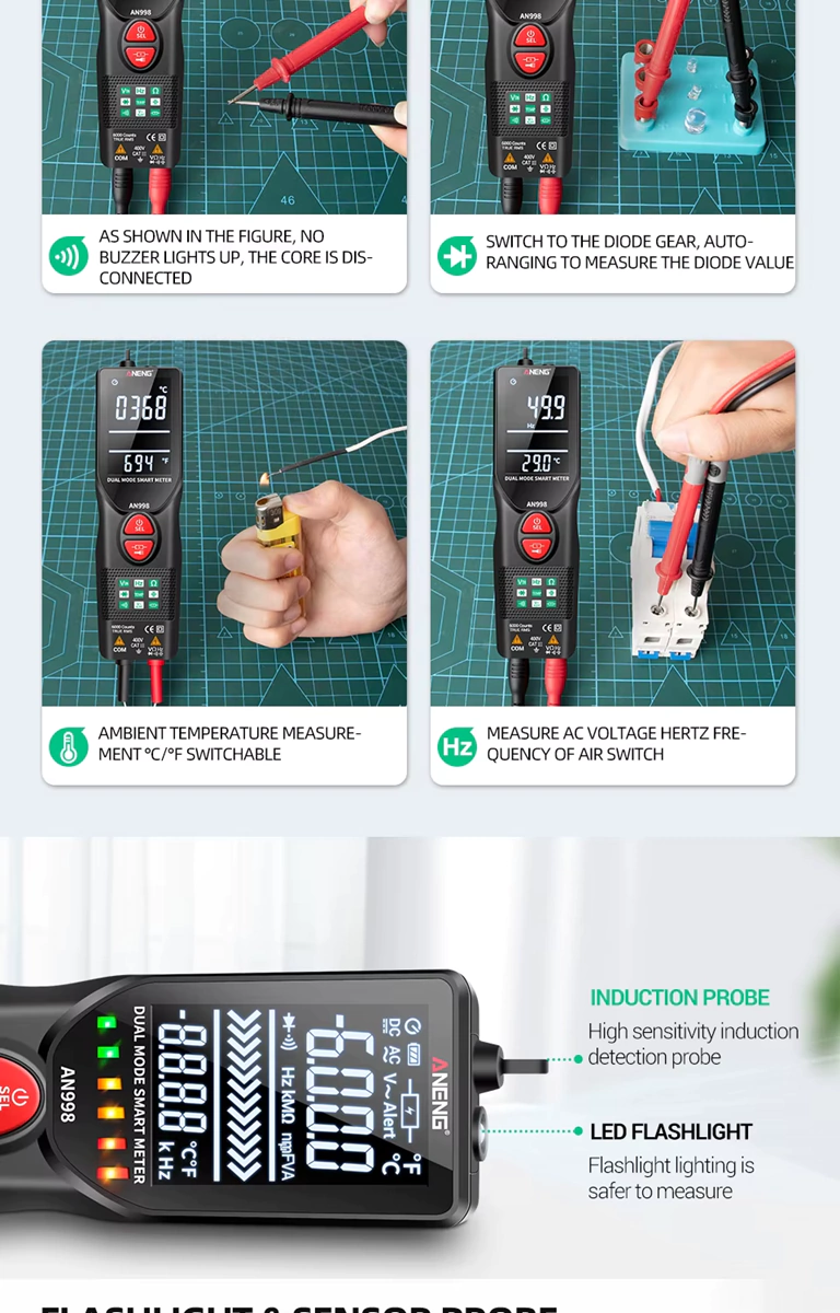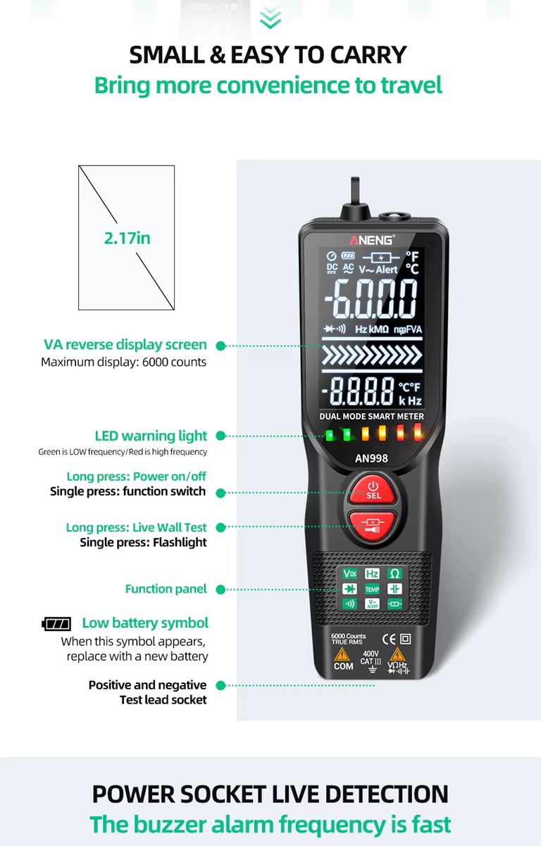 ANENG AN998 multimetro inteligente tester digital automatico electricista