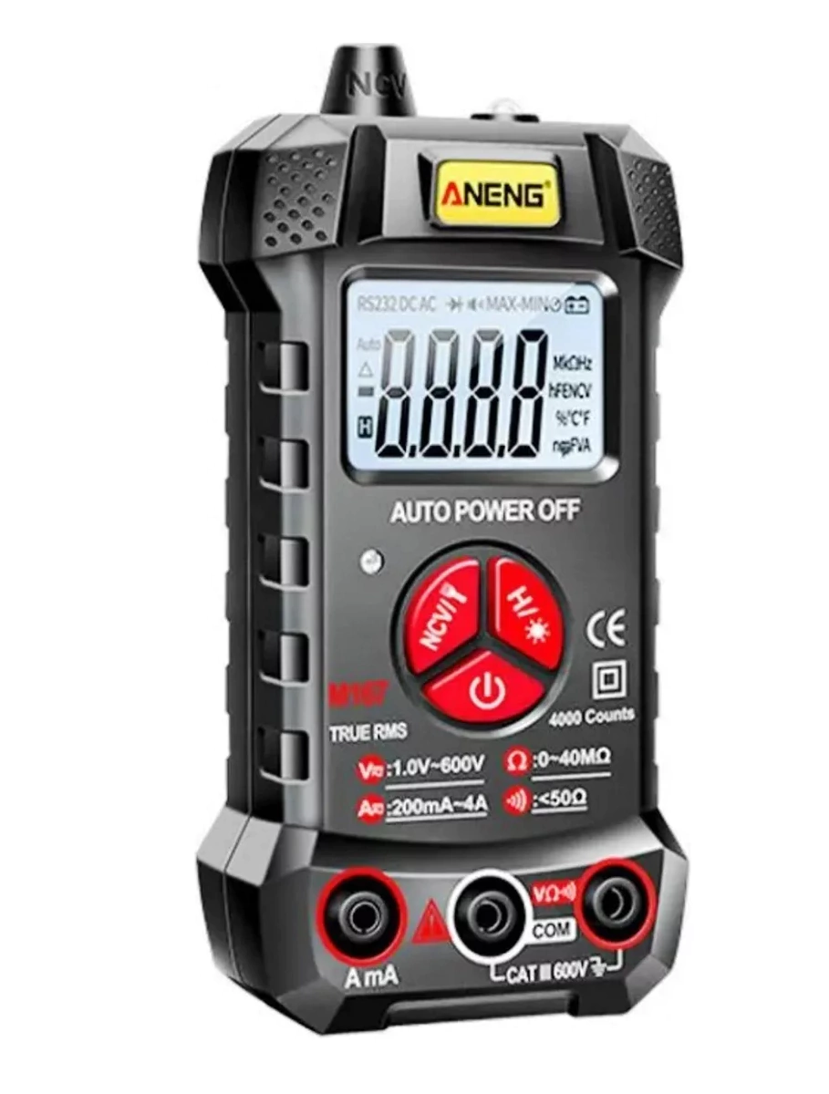 Multimetro con diseño compacto y multifunción; con función de retención de pantalla, visualización de símbolo de símbolo bajo voltaje, función de luz de fondo, protección de sobrecarga.