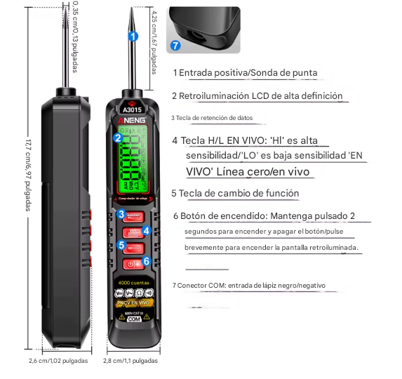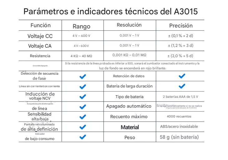 ANENG A3015 multímetro de pluma Digital inteligente 4000 recuentos 600V AC/DC probador de voltaje Detector pluma NCV inducción retroiluminación prueba de coche Características: