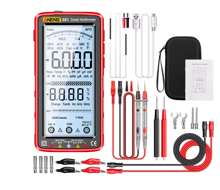 Multimetro ANENG 681 incluye las funciones de medición de voltaje AC/DC, corriente AC/DC, resistencia, capacitancia, temperatura, frecuencia, diodo, encendido/apagado, cable sin fuego, etc.